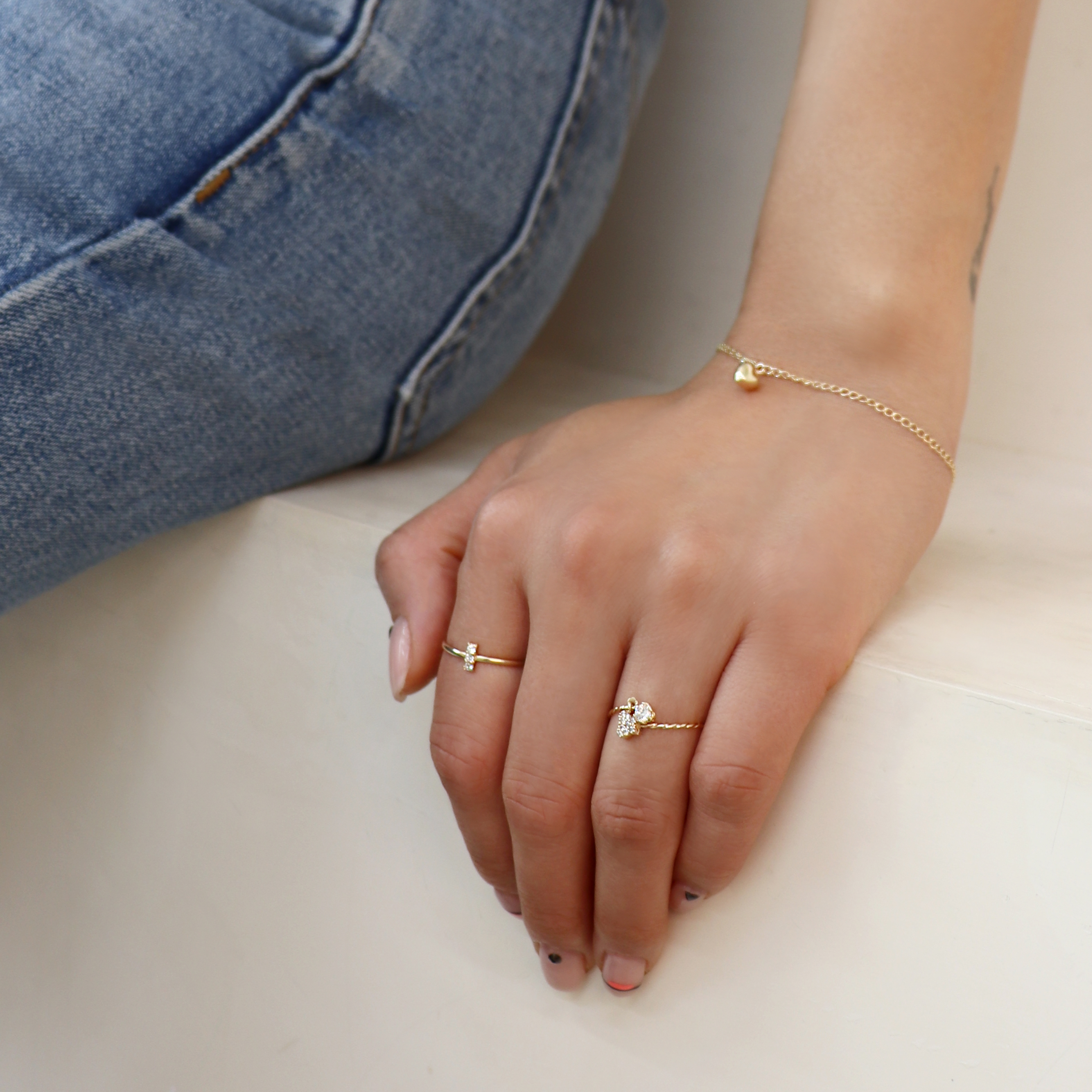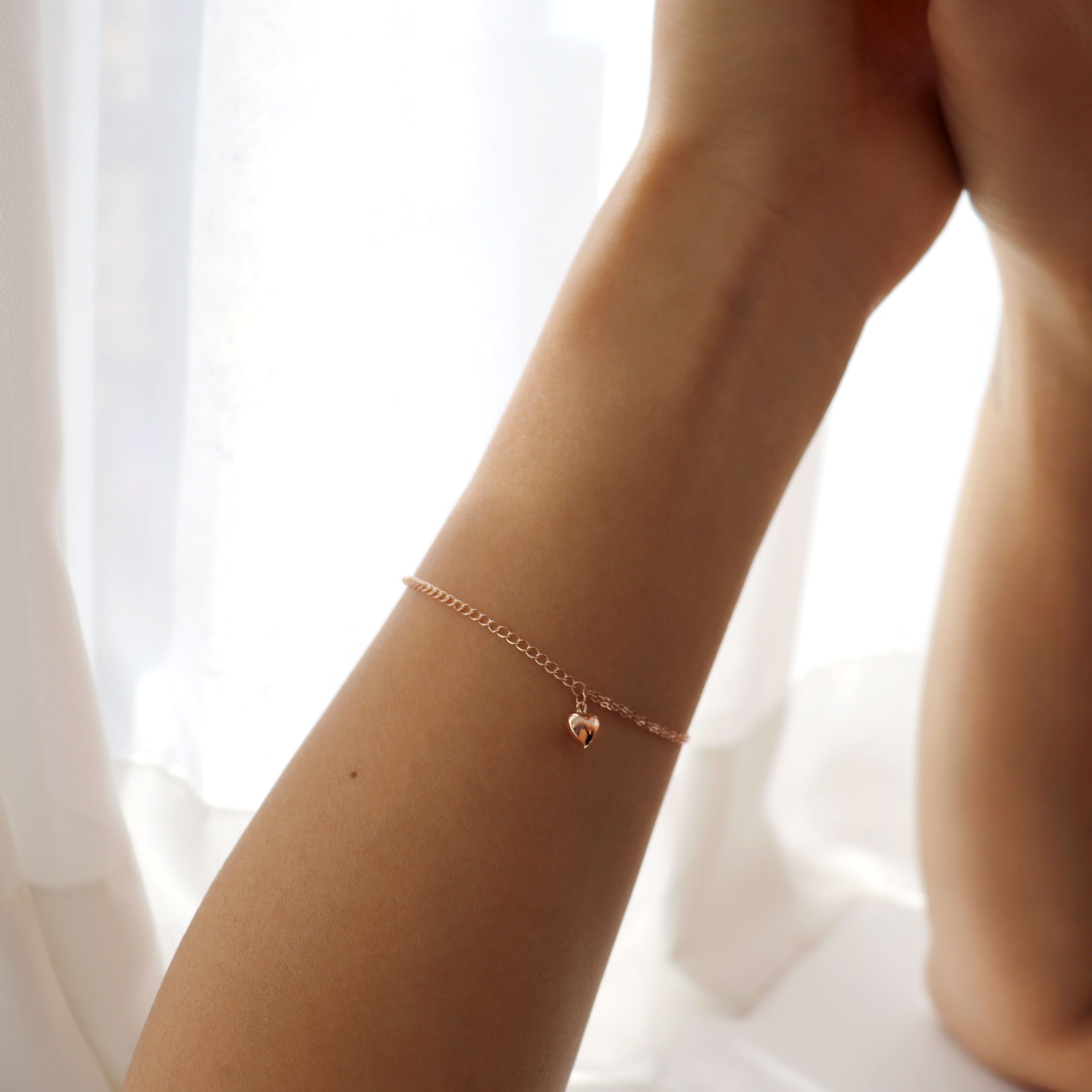 这款 14k 金链式手链饰有悬垂心形吊饰。这款可爱的手链非常适合送礼。它的一侧有精致的双链条。